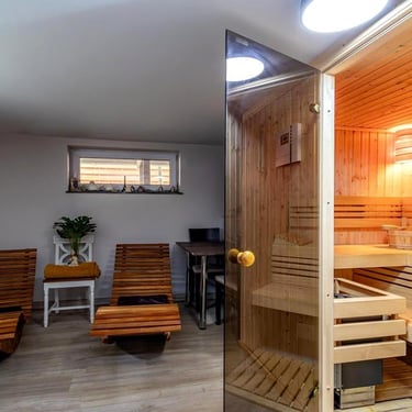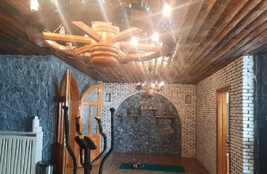 It offers a sauna and gym area, photovoltaic system (5.92 kW), fireplace, new roof and installations, and high-quality finishes throughout.