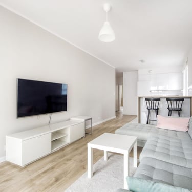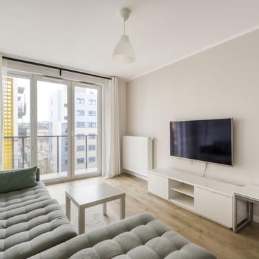 Spacious apartment, 61.48 m², 2 bedrooms + living room + separate kitchen, on the 5th floor. Location: ul. ulica Cybernetyki 2B, 02-677 Warsaw, Poland. Current rental income: approx. 5,500 PLN/month.